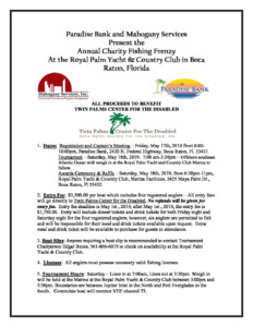 We are looking forward to the Mahogany Services, Inc and Paradise Bank collaboration on the 2019 FISHING FRENZY, Benefiting Twin Palms Center For The Disabled on May 17th & 18th, 2019.